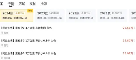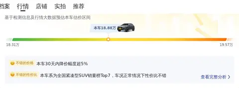 该车与2023年8月在合肥上牌,至今行驶了1万公里,车源地与车牌地一致,车身颜色为红色,目前未有过户记录,新车指导价33.59万,目前二手车报价18.88万。
