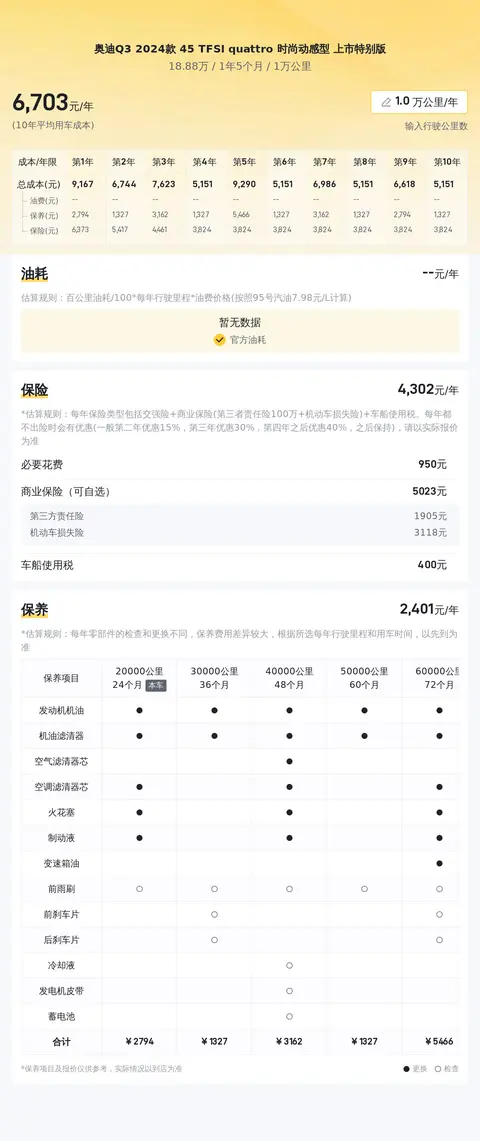 这款车的10年平均用车成本大约为每年1.2万元左右。然而,具体的实际费用可能会因个人驾驶习惯、用车频率以及其他因素而有所差异。