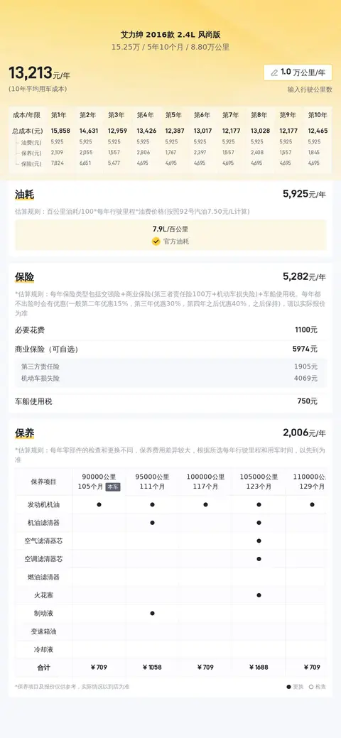 买二手车不仅要考虑买车费用,还要考虑用车费用,接下来我们看看这辆车的用车费用如何?
