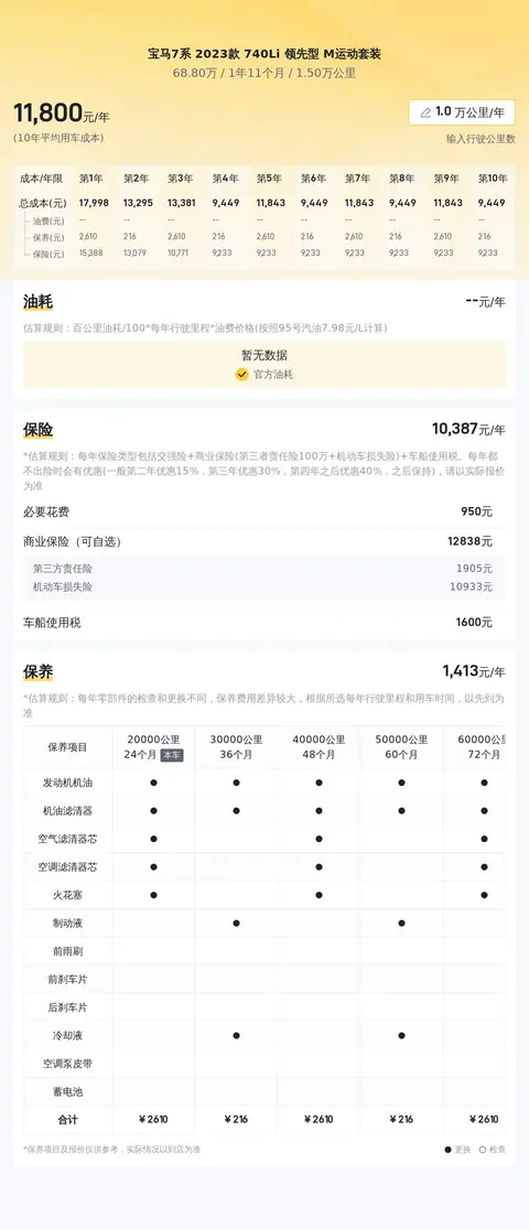 关于用车成本方面,这辆车的预计年均综合用车成本大概在2.2万元左右,实际费用支出根据车主的使用习惯和行车环境而变动。对于一辆豪华旗舰轿车而言,这个数字尚属合理范畴。