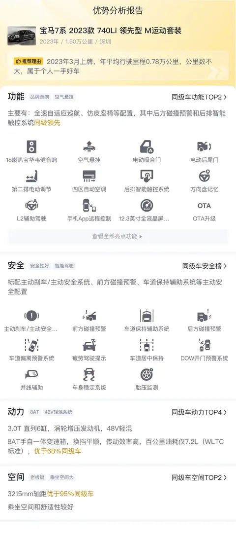 综上所述的新车含税价、用车成本、市场行情、优势分析、同款比价等数据仅供参考。在配置部分,因为二手车非标品,车辆可能会存在配置改装的情况,具体车况信息需要线下结合车辆实际情况进行综合参考。
