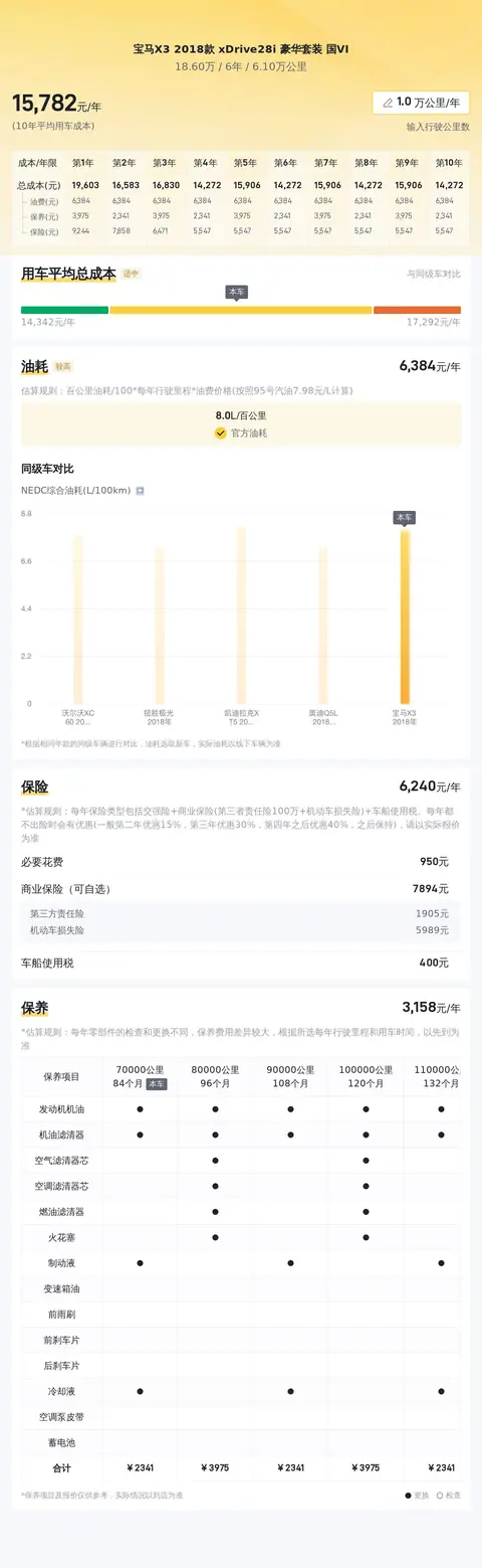 按照每年行驶2万公里计算,10年平均用车成本约为21473元/年。