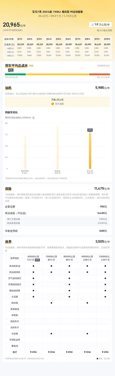 关于用车成本,参考这辆车的大体情况,我们粗略估算了一下,这辆车的年平均综合使用成本约为2.1万元左右。这里要说的是,这项花销与车主的用车习惯有直接关系。