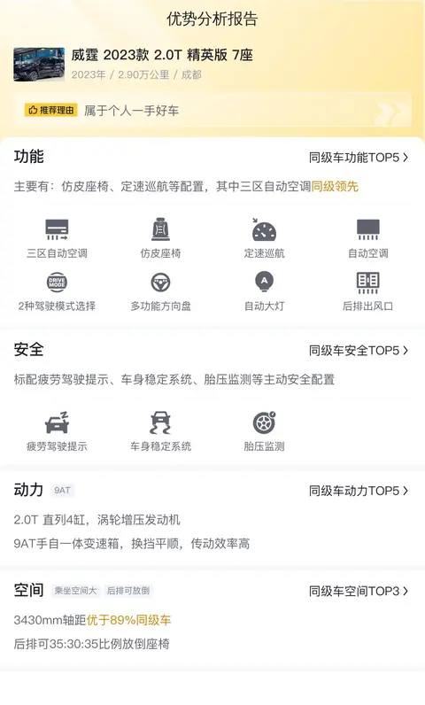 综上所述的新车含税价、用车成本、市场行情、优势分析、同款比价等数据仅供参考。在配置部分,因为二手车非标品,车辆可能会存在配置改装的情况,具体车况信息需要线下结合车辆实际情况进行综合参考。