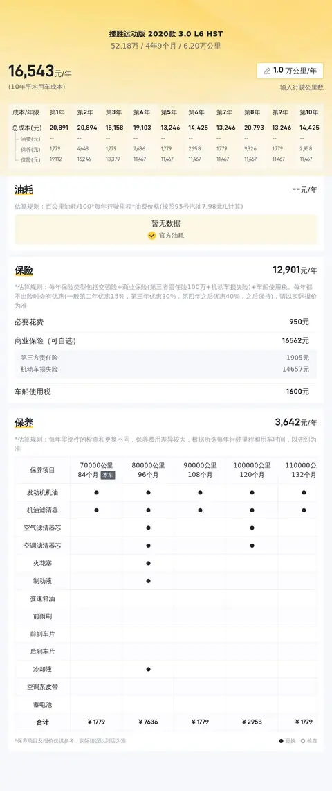 购车不仅要考虑购车成本,也要考虑用车和养车成本,接下来我们将为您综合分析计算一下这款车的年度开销,当然这个数据也会根据您的实际用车场景和使用强度有所不同。