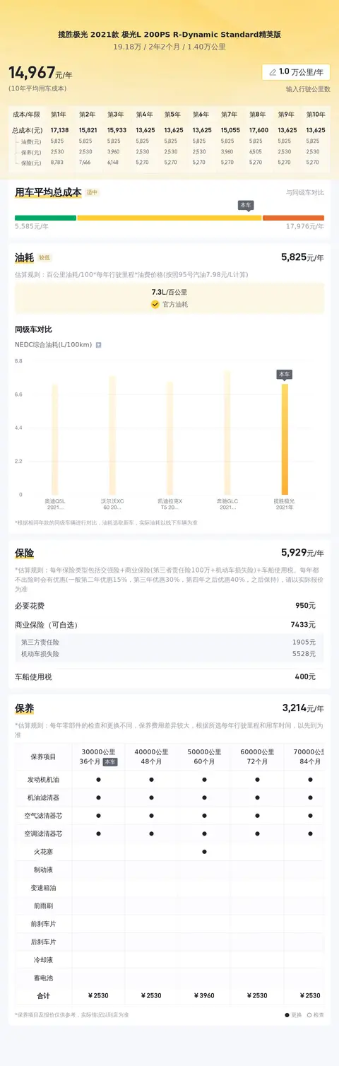 综上所述的新车含税价、用车成本、市场行情、优势分析、同款比价等数据仅供参考。在配置部分,因为二手车非标品,车辆可能会存在配置改装的情况,具体车况信息需要线下结合车辆实际情况进行综合参考。