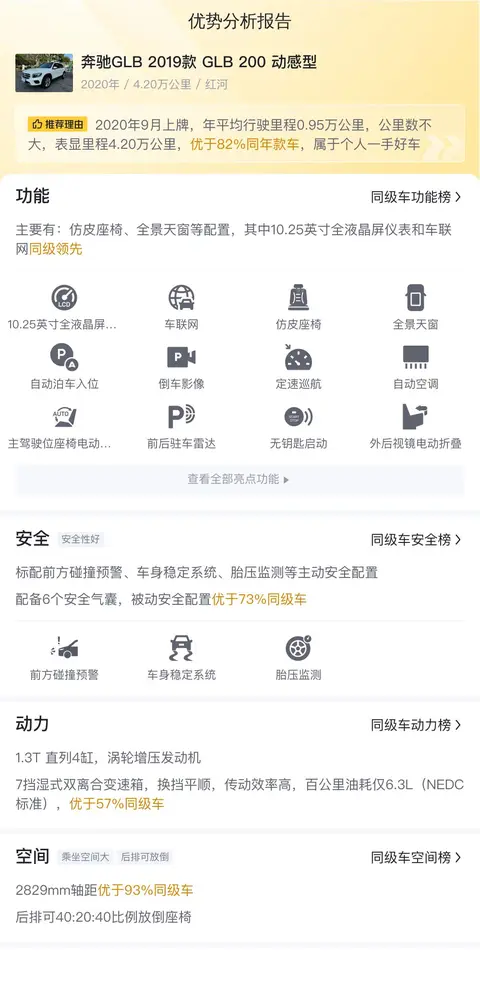 综上所述,这辆二手奔驰GLB 2019款 GLB 200 动感型以其良好的车况、合理的售价、实用的配置以及宽敞的空间,无疑为寻求豪华紧凑型SUV的消费者提供了一个出色的选择。无论是家庭出行还是日常代步,它都能很好地满足您的需求。