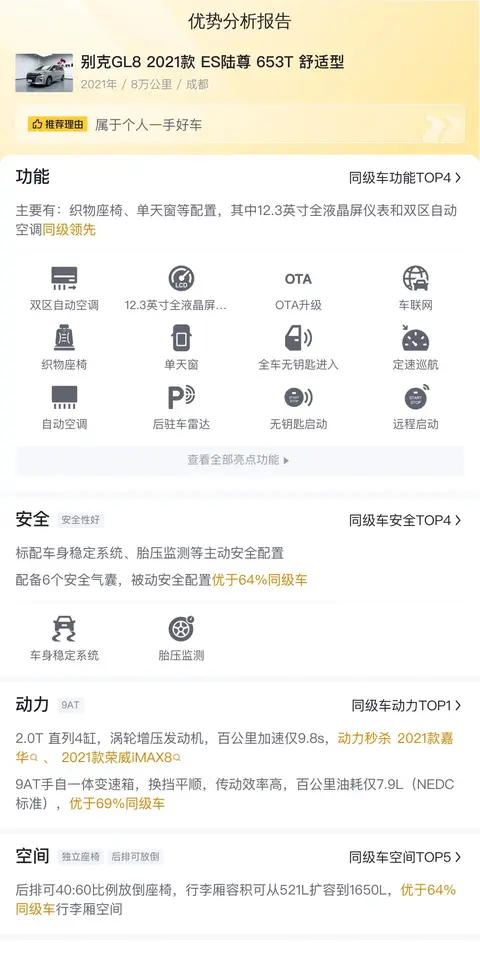 综上所述的新车含税价、用车成本、市场行情、优势分析、同款比价等数据仅供参考。在配置部分,因为二手车非标品,车辆可能会存在配置改装的情况,具体车况信息需要线下结合车辆实际情况进行综合参考。