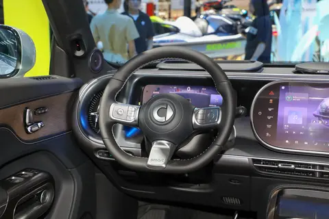 smart精灵#5整体内饰设计与smart精灵#1有较大差异,其配备25.6英寸AR增强型抬头显示、10.3英寸液晶仪表、13英寸OLED 2.5K中控双联屏,支持主副驾分区娱乐信息显示。新车还配备smart Pilot Assist 3.0智驾系统、20扬声器森海塞尔典范音响系统。