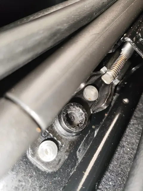 经内饰检测,主驾座椅滑轨、副驾座椅滑轨有拆卸痕迹。