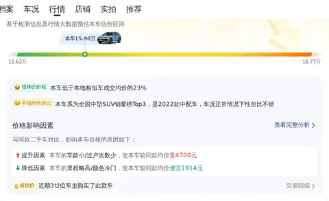 市场行情也是决定这款车价值的重要因素。根据当前市场情况,这款途观L的售价在14.65万至17.56万之间。当然,具体的售价会受到车辆状况等多种因素的影响。结合这辆车的车况表现,15.9万的报价还是挺合理的。