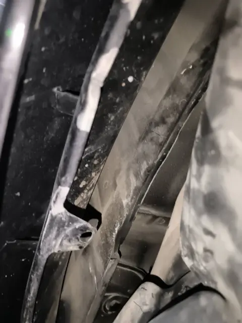 经检测,水箱框架有拆卸痕迹,左侧底边梁内侧变形,右侧底边梁划伤,左B柱封边变形,右B柱封边凹陷,右C柱封边划痕,左前翼子板内衬变形。以上便是这辆车的全部瑕疵,多少还是有点丢分的。