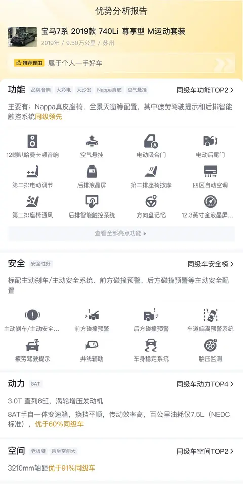 综上所述的新车含税价、用车成本、市场行情、优势分析、同款比价等数据仅供参考。在配置部分,因为二手车非标品,车辆可能会存在配置改装的情况,具体车况信息需要线下结合车辆实际情况进行综合参考。