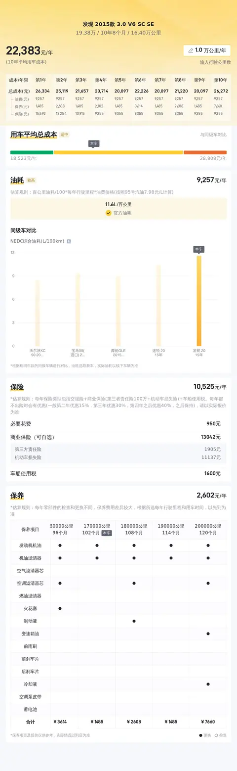 在选择购买一辆二手车时,除了考虑初始的购车费用外,还需要细致考量日常使用过程中的各项开支。基于对该车型的深入分析和市场数据,我们为您提供了一份详尽的用车成本概览,以助您做出更加理智的决策。年均综合用车成本:22,188元/年(按每年行驶2万公里计算)。重要提示:上述数据仅供参考,实际用车成本可能会根据您的具体使用情况、驾驶习惯以及车辆维护状况等因素有所变动。