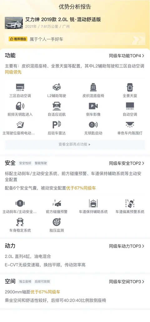 综上所述的新车含税价、用车成本、市场行情、优势分析、同款比价等数据仅供参考。在配置部分,因为二手车非标品,车辆可能会存在配置改装的情况,具体车况信息需要线下结合车辆实际情况进行综合参考。