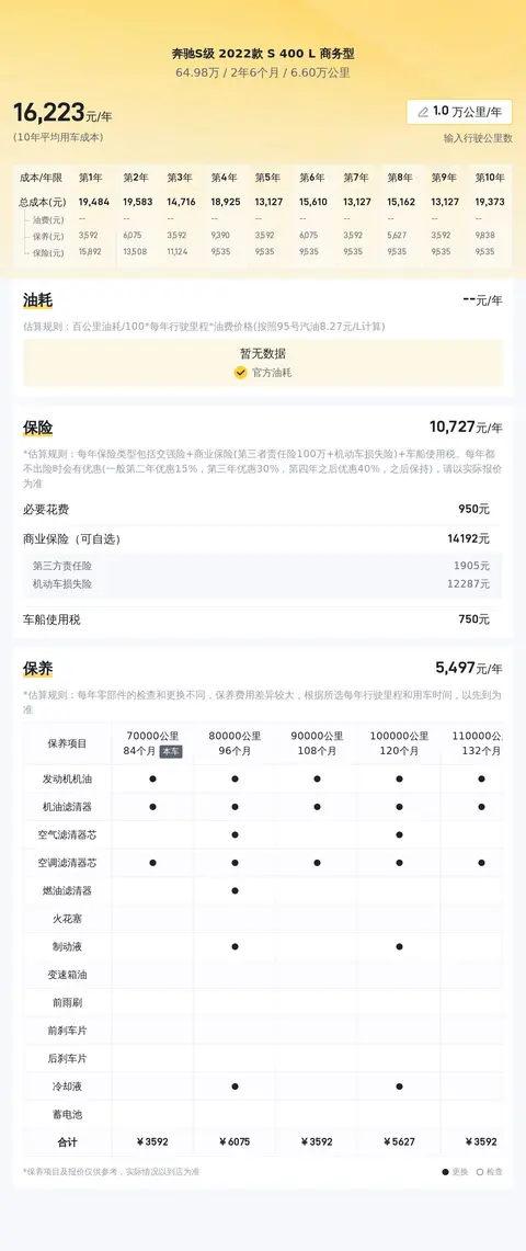 这款车的10年平均用车成本为21707元/年,相较于同级别竞品车型,其用车成本处于较高水平。但在保值率方面,这款车却有着不错的表现。根据数据显示,该车的10年平均保值率为49.02%,相较于同级别竞品车型,其保值率较高。