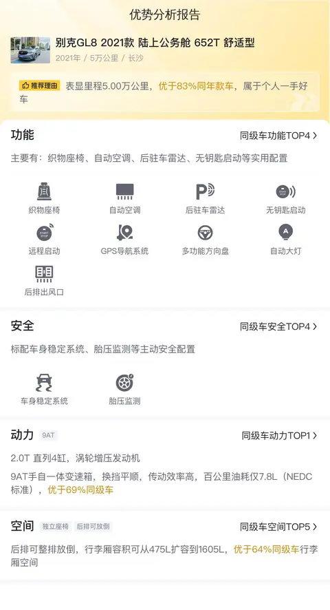 这辆GL8配置丰富,尤其是舒适性和安全性方面的配置较为全面,适合商务接待和家庭出行。由于车身尺寸较大,在拥挤的城市道路中,驾驶和停车可能会相对困难。与同级别车型相比,它在动力性能、乘坐舒适度等方面表现出色,但油耗相对较高。