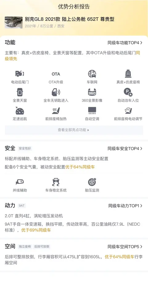 综上所述的新车含税价、用车成本、市场行情、优势分析、同款比价等数据仅供参考。在配置部分,因为二手车非标品,车辆可能会存在配置改装的情况,具体车况信息需要线下结合车辆实际情况进行综合参考。