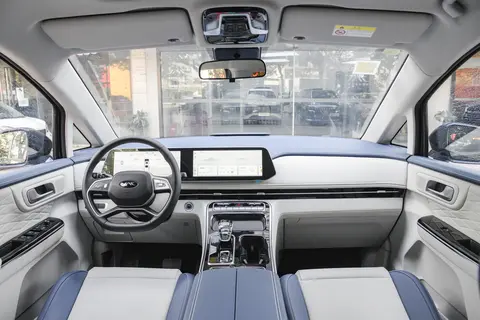 前脸部分会有一个独特的设计语言,大尺寸的进气格栅,搭配犀利的大灯组,就会有一种威严的气质。大灯还会采用LED光源,不仅亮度较高,而且在夜间还会拥有比较广泛的照射范围,可以提升行车的安全性。大灯还会具备自动大灯等功能,在光线变暗的情况下就可以自动的开启,非常的方便。从车身的侧面来看,有一个贯穿的腰线,看上去比较修长。车门是平开门+侧滑门的设计,体现出满满的舒适性。对于后排的乘客来说,根本就不需要担心在狭窄的空间内无法开门。车顶有平直的线条,可以保证车内头部空间的充足。再来到车尾时,整体的造型比较方正,有一个贯穿式的尾灯,在点亮之后辨识度非常的高。后备箱的容积客观在常规的状态下是700L,如果放到第3排的座椅,后备箱的容积就可以扩展2500L,在日常出行时就可以满足承载的需求。