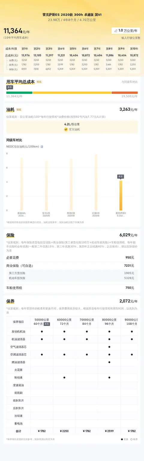 在用车成本方面,根据估算,这辆车的年均综合用车成本大约在每年1.1万元左右。这项费用并不固定,具体还需根据车辆的实际使用情况来确定。
