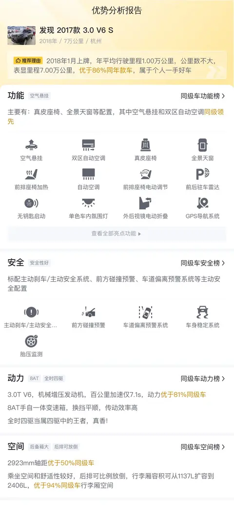 综上所述的新车含税价、用车成本、市场行情、优势分析、同款比价等数据仅供参考。在配置部分,因为二手车非标品,车辆可能会存在配置改装的情况,具体车况信息需要线下结合车辆实际情况进行综合参考。