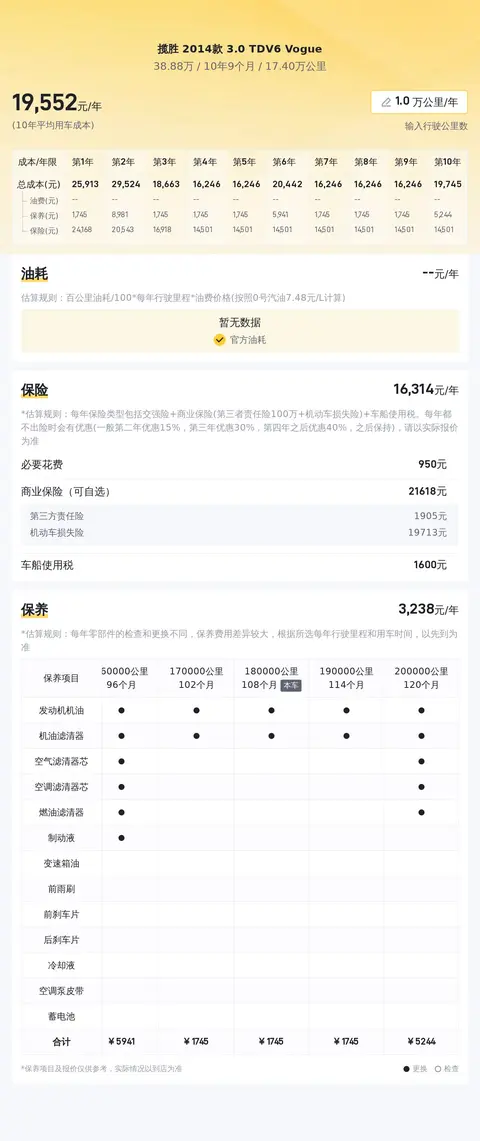 根据当前市场行情,这款车的售价在33.74万至41.92万之间,具体价格因车况而异。在用车成本方面,这款车的年均综合用车成本约为每年2.3万元,实际费用支出会根据车主的使用习惯和行车里程而有所不同。
