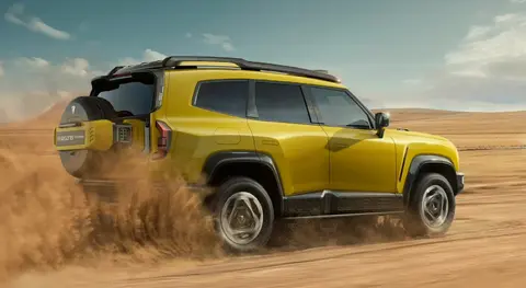 车尾设计上,相比现款有所调整,车辆牌照设计在了备胎罩上,尾灯造型也进行了调整除此之外,还新增了外放电接口和拖挂钩,出厂自带拖挂资质。