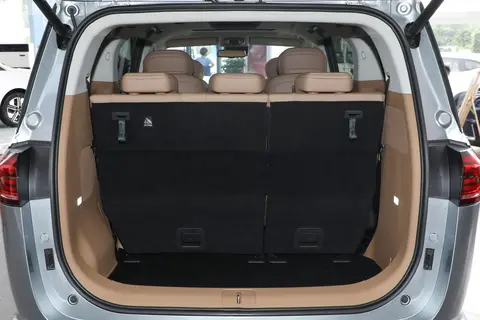 既然说到尾箱。我们就来看看他的载货空间。这款车是标配了带记忆位置的电动尾门的。尾门开口很大,几乎和尾箱内部的横向宽度齐平。大件行李进出没有难度。如果地台更低一些,就更有优势了。整个内部的空间非常平整,常规容量来到了700L。比起别克GL8的521L的尾箱要有优势得多。在腾势D9那个410L的尾箱面前,竞争力更是杠杠滴了。将后排座椅放倒,载货空间最大可以扩展到2500L,这个容量就可以用夸张来形容了。需要的时候,用来拉货也不成问题。
