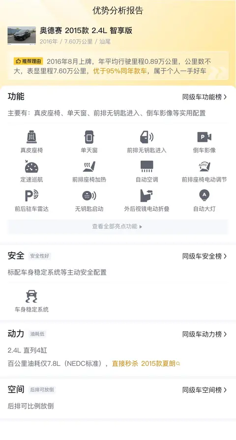 综上所述的新车含税价、用车成本、市场行情、优势分析、同款比价等数据仅供参考。在配置部分,因为二手车非标品,车辆可能会存在配置改装的情况,具体车况信息需要线下结合车辆实际情况进行综合参考。