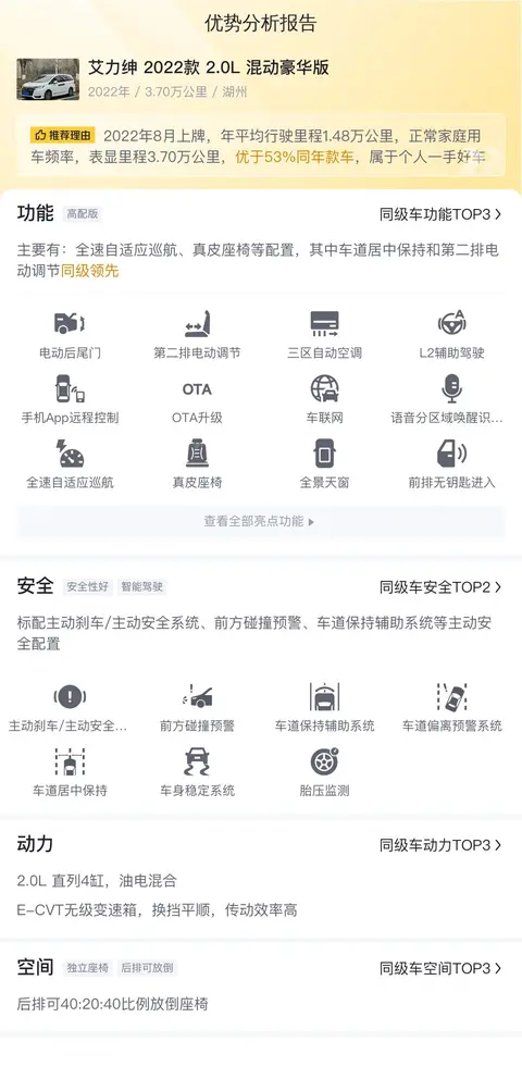 综上所述的新车含税价、用车成本、市场行情、优势分析、同款比价等数据仅供参考。在配置部分,因为二手车非标品,车辆可能会存在配置改装的情况,具体车况信息需要线下结合车辆实际情况进行综合参考。