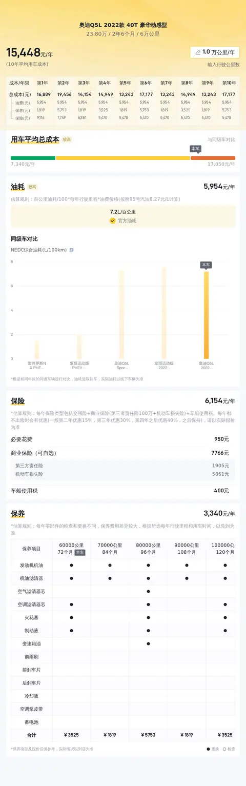 综上所述的新车含税价、用车成本、市场行情、优势分析、同款比价等数据仅供参考。在配置部分,因为二手车非标品,车辆可能会存在配置改装的情况,具体车况信息需要线下结合车辆实际情况进行综合参考。