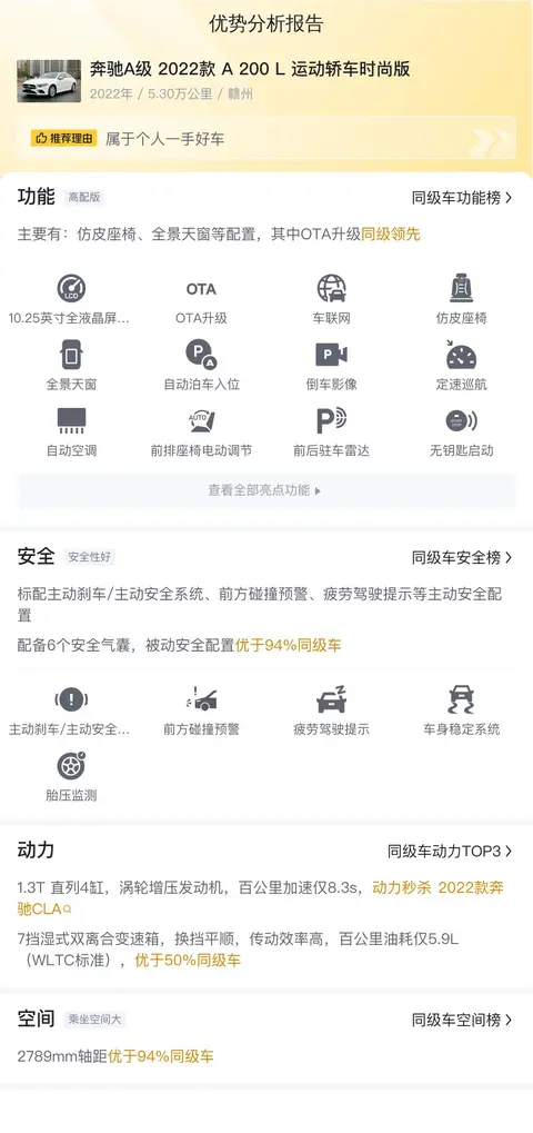 对比市场上同类车型,我们细致分析了这辆奔驰A级的各项优劣点,以帮助您作出全面评估。