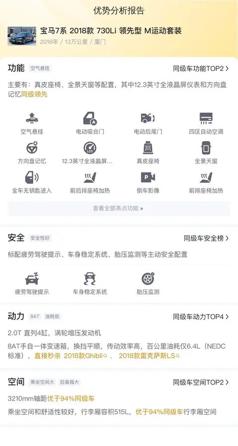 综上所述的新车含税价、用车成本、市场行情、优势分析、同款比价等数据仅供参考。在配置部分,因为二手车非标品,车辆可能会存在配置改装的情况,具体车况信息需要线下结合车辆实际情况进行综合参考。