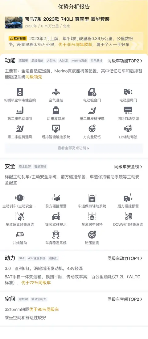 综上所述的新车含税价、用车成本、市场行情、优势分析、同款比价等数据仅供参考。在配置部分,因为二手车非标品,车辆可能会存在配置改装的情况,具体车况信息需要线下结合车辆实际情况进行综合参考。