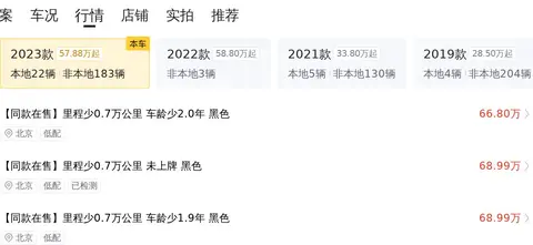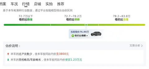 接下来,我们说一下大家比较关心的价格部分。当前市场上这款车型的二手车价格大约在66.97万至80.57万之间。需要说明的是,市场价格价和最终成交价是有差异的,具体售价受到车辆状况等因素的影响。