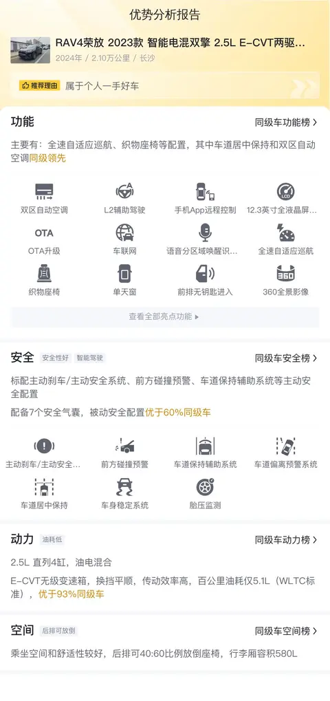 要说买一台经济实用的家庭车,很多人的第一念头其实并非现在火热的各种新能源,而是会想起一个更加保守的品牌——丰田!作为早年间进入国内车市耕耘数年的丰田,一直都明白大众需要的是一台经济省油且省心的车,尤其是面对普通家庭在消费大宗商品时的执念,不求名利,但求安稳。今天我们就为您带来一辆二手RAV4荣放(图片|配置|询价),看看这辆有着2.1万公里里程的二手RAV4 荣放还能为您带来哪些惊喜。