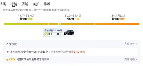 这辆车于2021年10月在杭州上牌,至今行驶了4.8万公里,黑色车身,新车指导价86.39万,目前二手车报价51.8万,未过户。