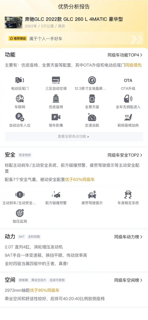 而在用车成本部分,根据大数据统计的分析,可以帮助潜在买家从一个更宏观的视角评估这辆车,从而做出更合适自己的选择。