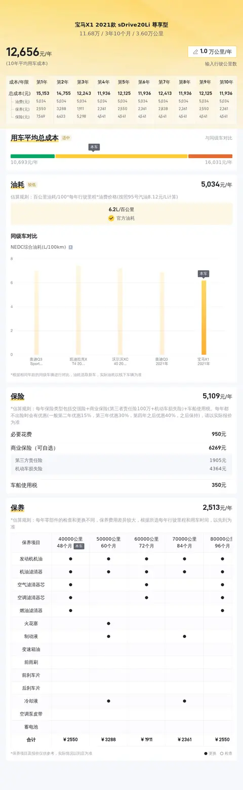 这款车在能耗方面表现正常,用车成本方面,我们以一年20000公里里程为计算标准,大概是13453元,具体还需根据车辆实际使用情况来定。