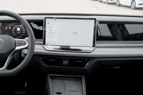 坐进 2025 款探岳 L 300TSI 的车内,首先映入眼帘的是环抱式座舱设计,这种设计给人一种温馨、舒适的感觉,同时布局简洁合理,彰显出豪华感。车内最引人注目的当属三块大尺寸屏幕:15 英寸的悬浮式中控屏,显示清晰,操作流畅,集成了丰富的车辆信息和娱乐功能;10.25 英寸的全液晶仪表,能够清晰地展示车辆的行驶数据等信息;11.6 英寸的副驾驶娱乐屏,则为副驾驶乘客提供了丰富的娱乐体验,比如观看视频、浏览地图等。三屏联动的设计,提升了车内的科技氛围,让驾驶者在操作时更加便捷高效。