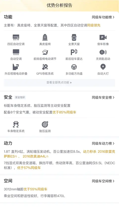 除了市场行情,我们还准备了奥迪A6L 2016款 TFSI 舒适型与同级别车型在功能配置方面的对比分析。通过下面的照片,我们将向您展示这款车在所属级别中的竞争力如何。