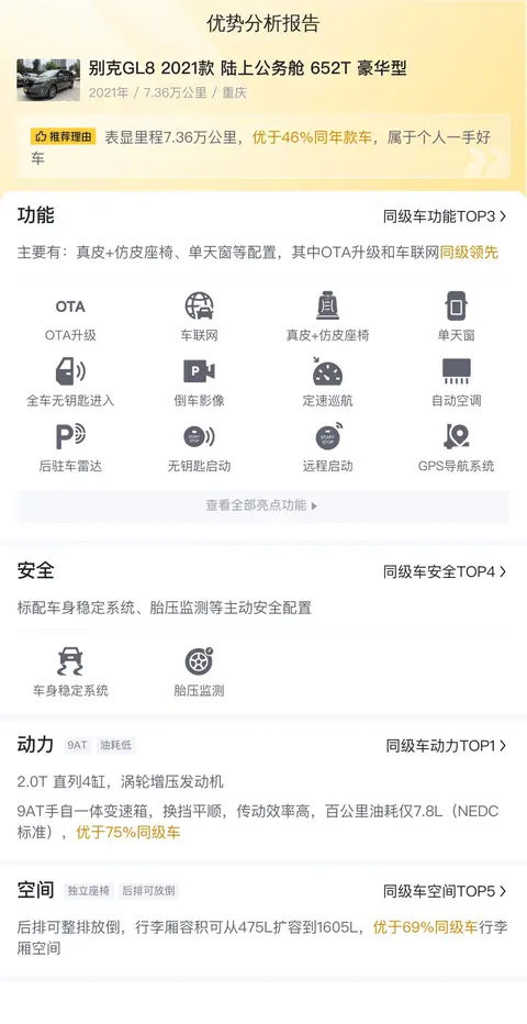 综上所述的新车含税价、用车成本、市场行情、优势分析、同款比价等数据仅供参考。在配置部分,因为二手车非标品,车辆可能会存在配置改装的情况,具体车况信息需要线下结合车辆实际情况进行综合参考。