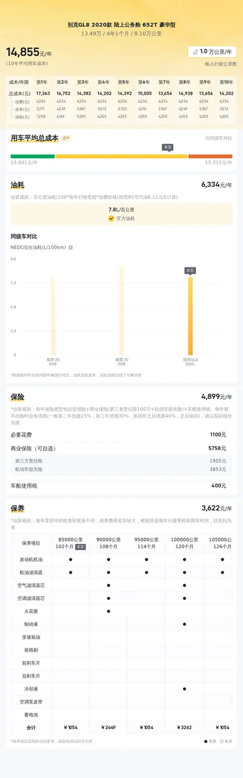 大家在购买二手车的时候,除了关注车辆价格,也要关注一下车辆的日常使用成本,我们以一年2万公里的行驶里程来计算一下: