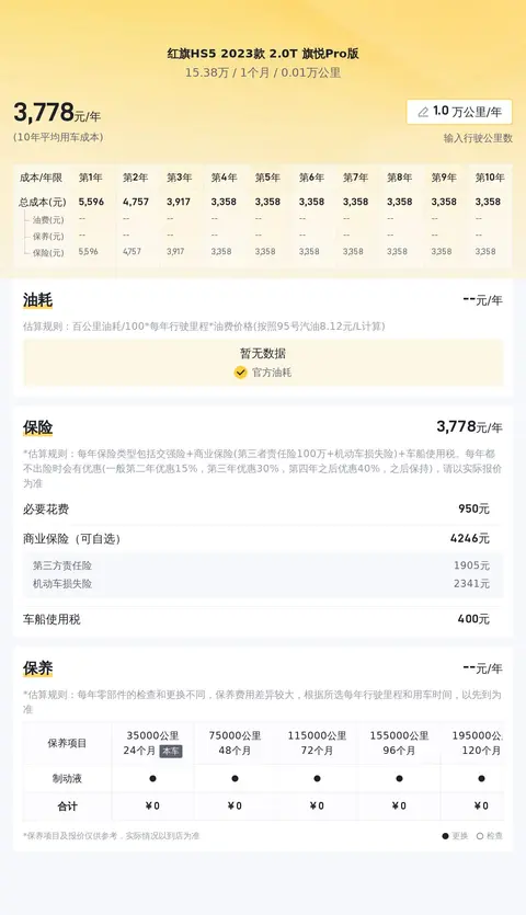 关于红旗HS5的用车成本,我们将通过对比分析,为您提供养车成本的估算数据,帮助您全面评估购买后的真实支出。