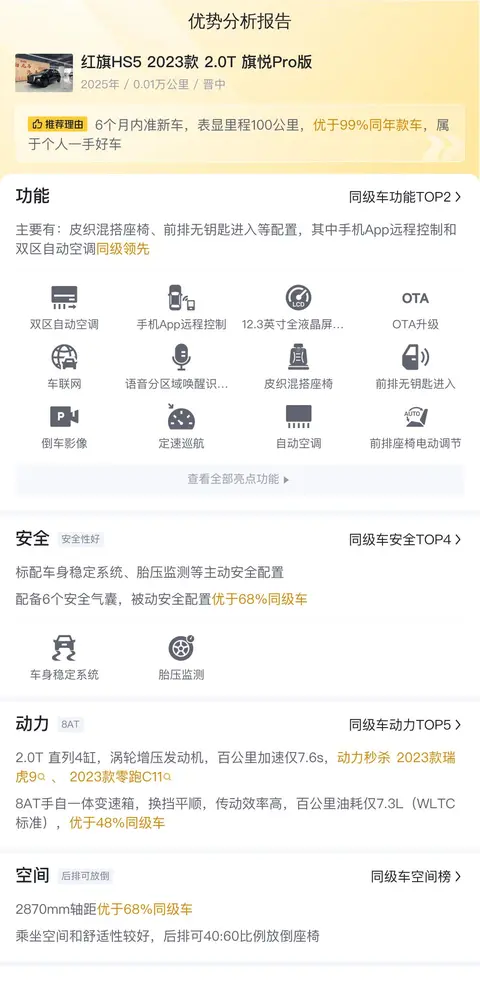 接下来,我们将分析这款红旗HS5在安全性、动力性能、空间及舒适性等方面的市场表现,让您直观了解其产品实力。