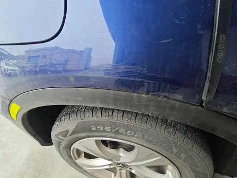 右后翼子板,划痕(L<10cm),非事故造成,受尖锐物体划伤造成油漆面受损,未伤及底漆可通过局部抛光或喷漆恢复外观美观性,不会对车辆安全性能造成影响,不影响车辆正常使用。