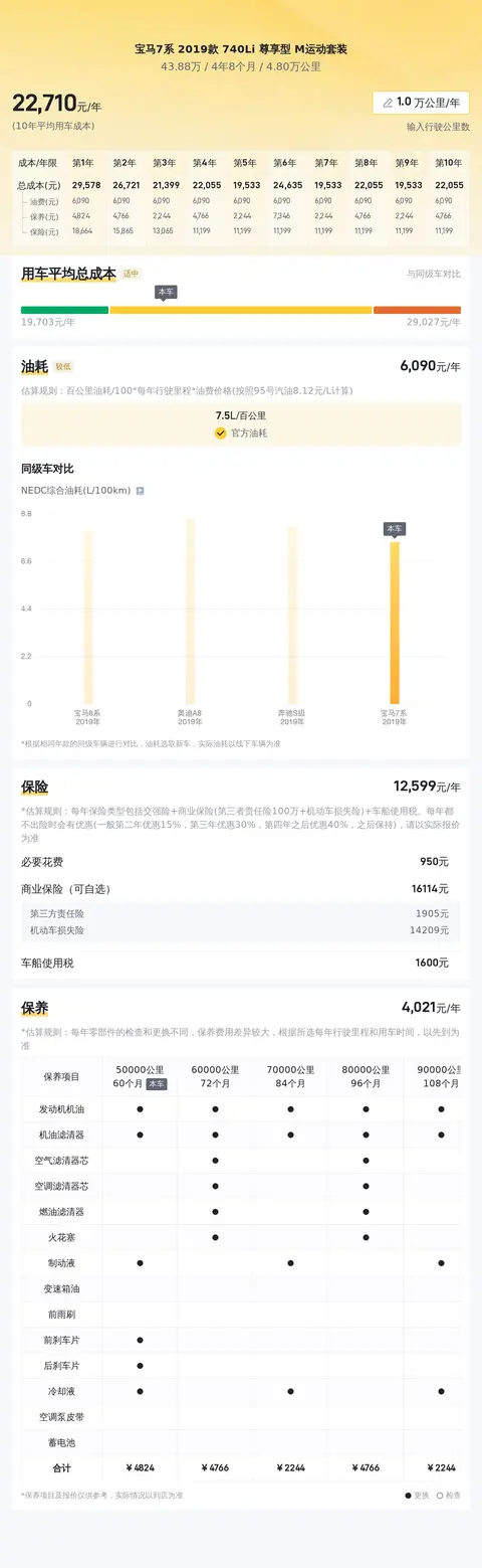 年度用车成本方面,按照一年行驶一万公里计算,该车的燃油费用约6885元,保养费用约4380元,保险费用约15889元,其他费用根据个人情况而定,总体年度用车成本约27154元。实际费用根据使用情况和保险政策有所不同。