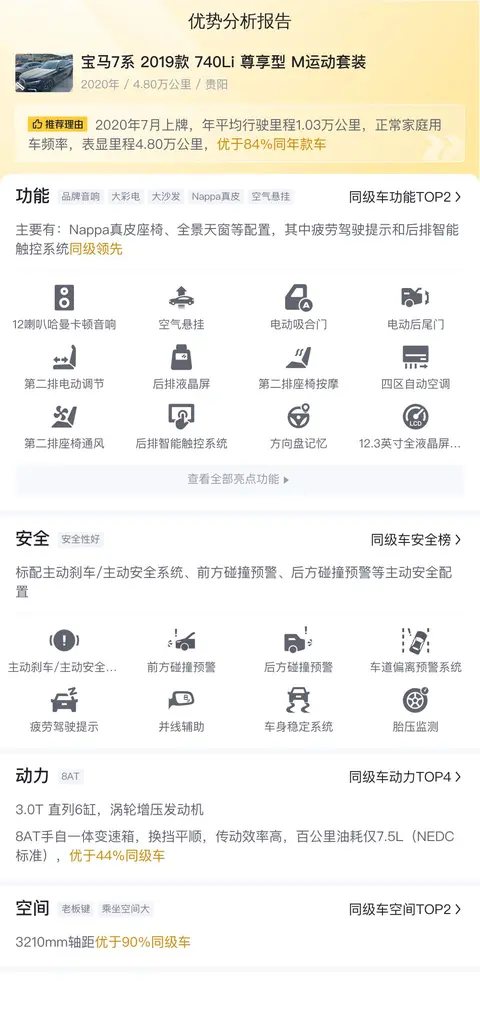 综上所述的新车含税价、用车成本、市场行情、优势分析、同款比价等数据仅供参考。在配置部分,因为二手车非标品,车辆可能会存在配置改装的情况,具体车况信息需要线下结合车辆实际情况进行综合参考。