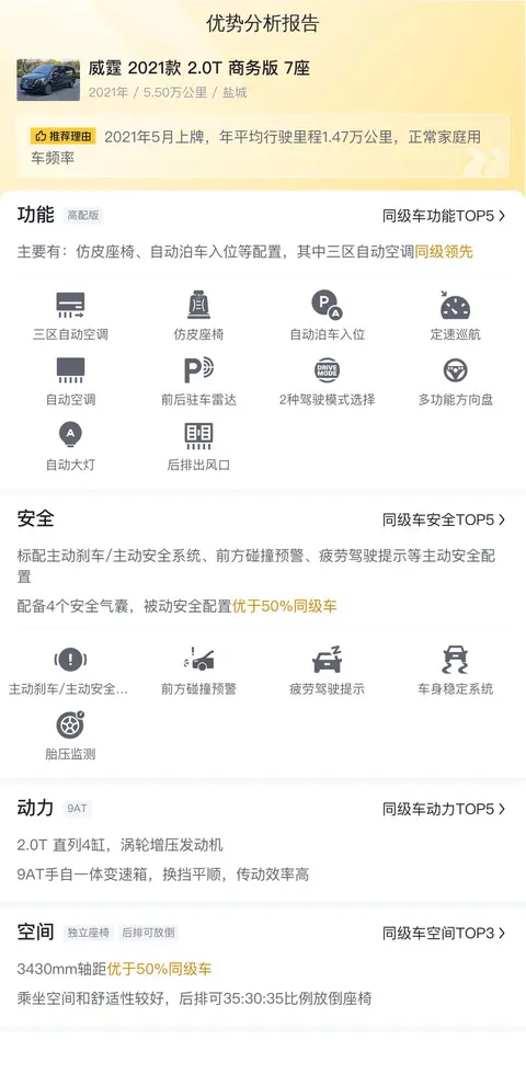 综上所述的新车含税价、用车成本、市场行情、优势分析、同款比价等数据仅供参考。在配置部分,因为二手车非标品,车辆可能会存在配置改装的情况,具体车况信息需要线下结合车辆实际情况进行综合参考。