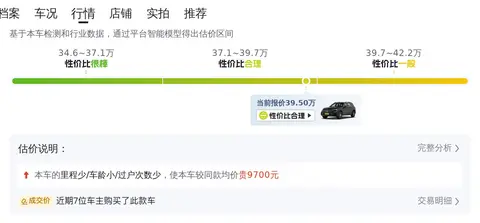 根据当前二手车市场的行情,这辆奔驰GLC的售价区间应在32.87万至38.73万之间。考虑到车辆的里程数较少,且未经历过户,这一价格区间较为合理。同时,预计未来两年内,该车的折价率较低,保值率较高,是一个不错的选择。